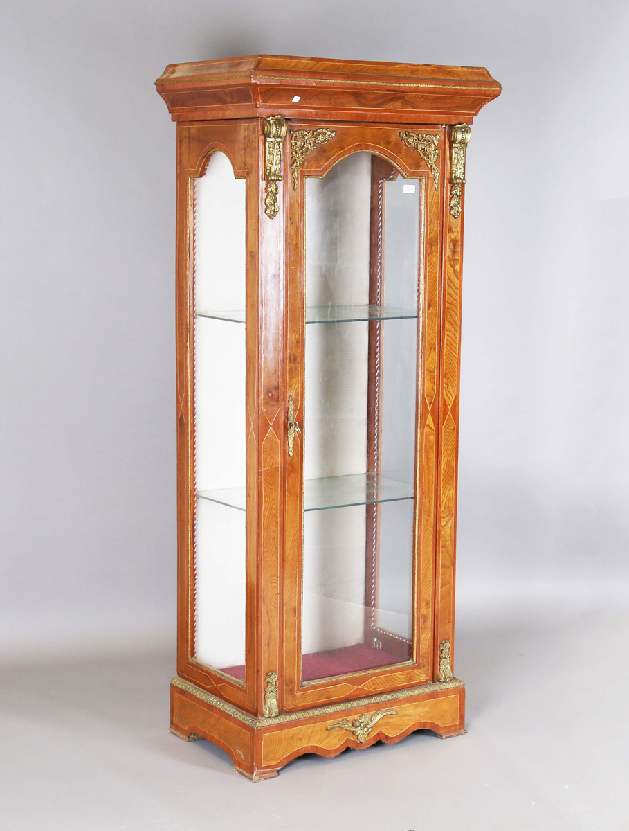 A late 20th century French elm and gilt metal mounted vitrine, height 186cm, width 79cm, depth 51cm.