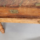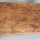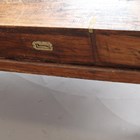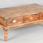 A 20th century Eastern-made campaign style hardwood and brass bound low coffee table, fitted with three drawers, height 48cm, width 122cm, depth 68cm.