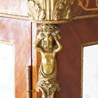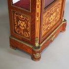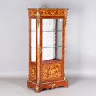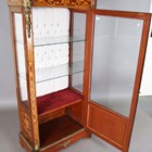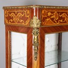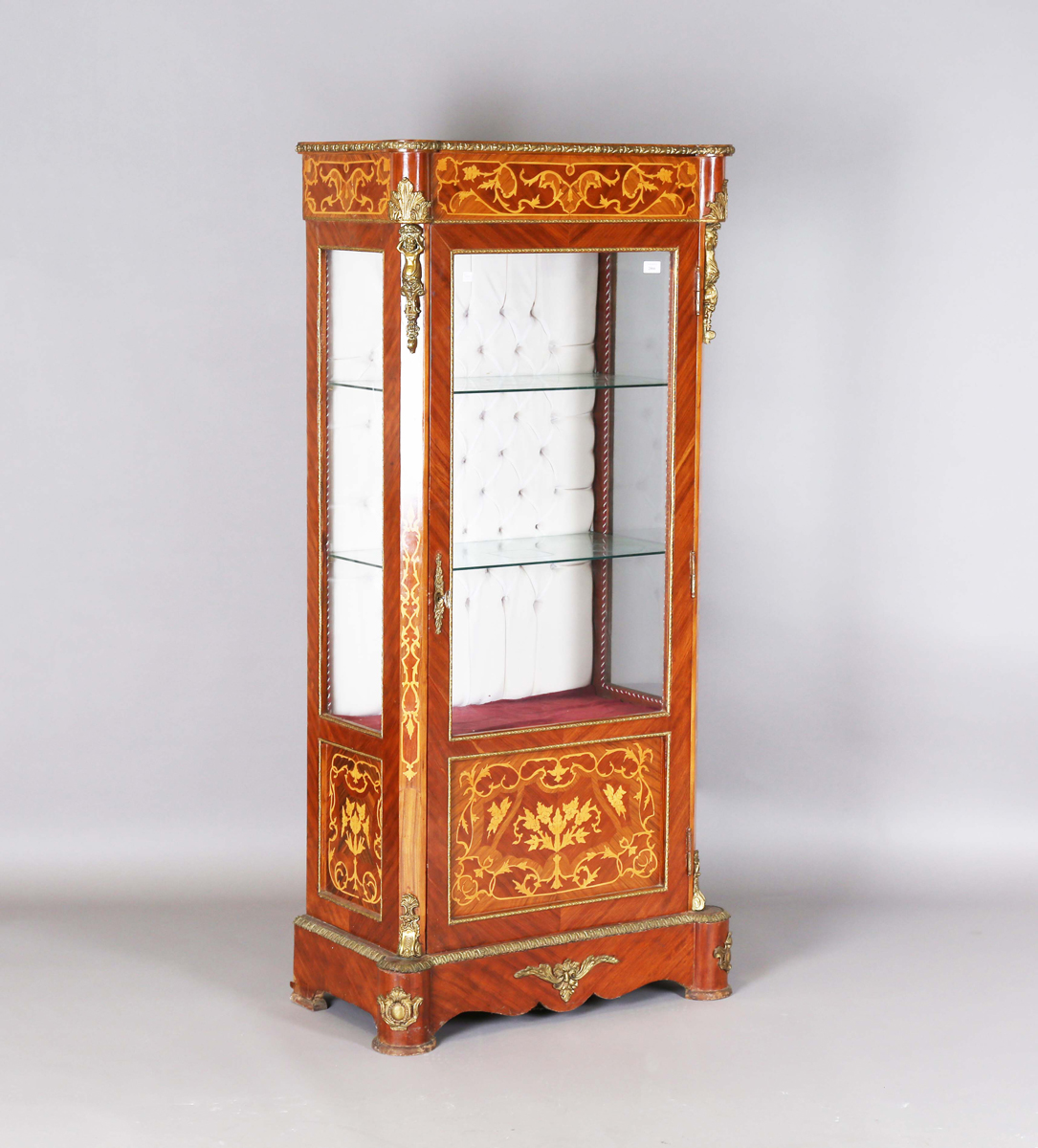 A late 20th century French walnut and foliate inlaid vitrine with gilt metal mounts, height 164cm, width 75cm, depth 40cm (lacking marble top).