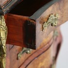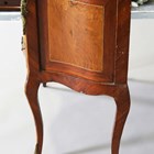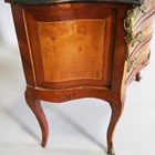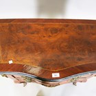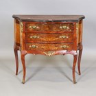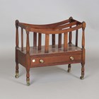 A late 20th century French elm and gilt metal mounted three-drawer chest, height 81cm, width 93cm, depth 43cm, together with a reproduction mahogany Canterbury, width 49cm.
