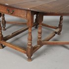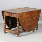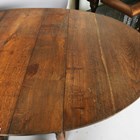 A 19th century oak drop-flap oval dining table, fitted with two frieze drawers, on turned and block legs, height 74cm, length 196cm, depth 128cm.