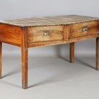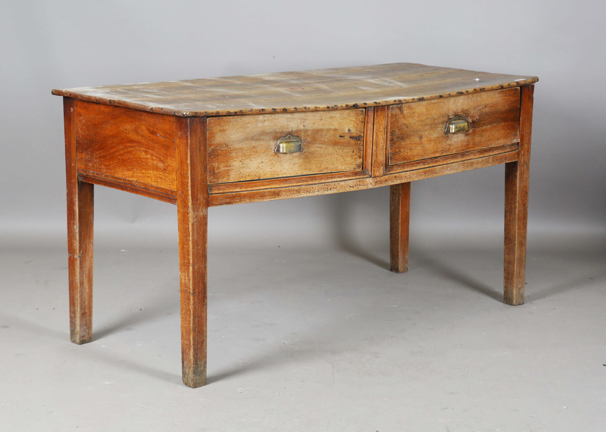 A 19th century provincial walnut serving table, fitted with two frieze drawers, height 77cm, width 148cm, depth 64.5cm.