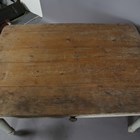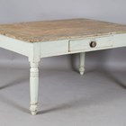 A late Victorian painted and stripped pine kitchen table, fitted with a single drawer, height 67cm, length 139cm, depth 99cm.