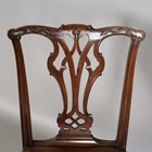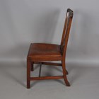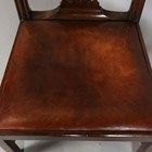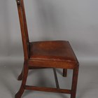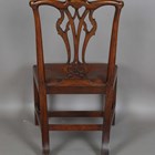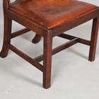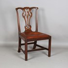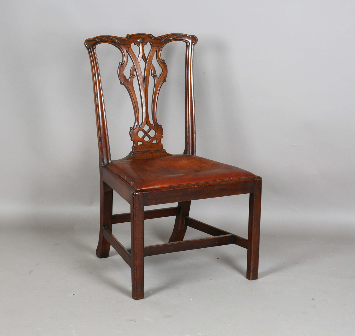 A George III Chippendale period mahogany carved and pierced splat back dining chair with a drop-in brown leather seat, height 95cm, width 52cm, depth 53cm.