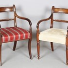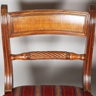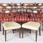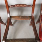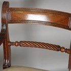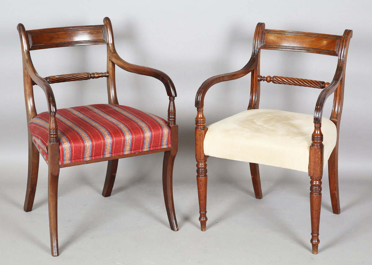 A group of eleven Regency mahogany bar back dining chairs, all with ropetwist centre rails, some with sabre legs, others turned, comprising two carvers, height 84cm, width 54cm, and nine standards, height 85cm, width 51cm.