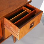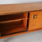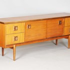 A mid-20th century teak sideboard by the Bath Cabinet Makers, fitted with two sliding doors flanked by four drawers, height 74cm, width 198cm, depth 46cm.