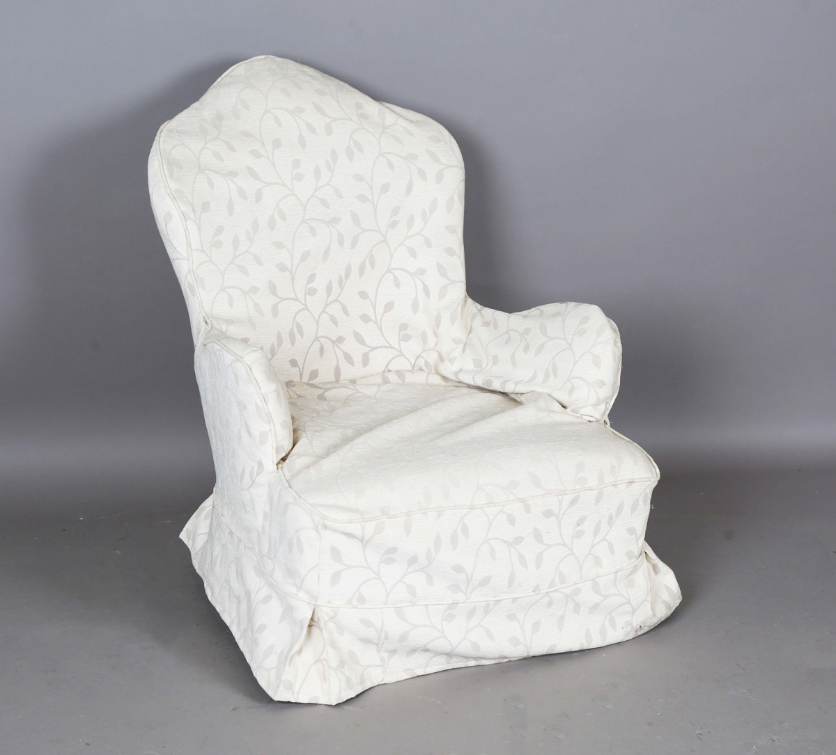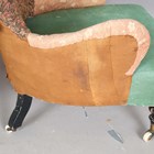 A late Victorian iron hoop back nursing chair, on ebonized legs with china castors, height 97cm, width 69cm.