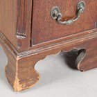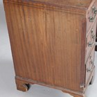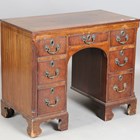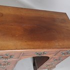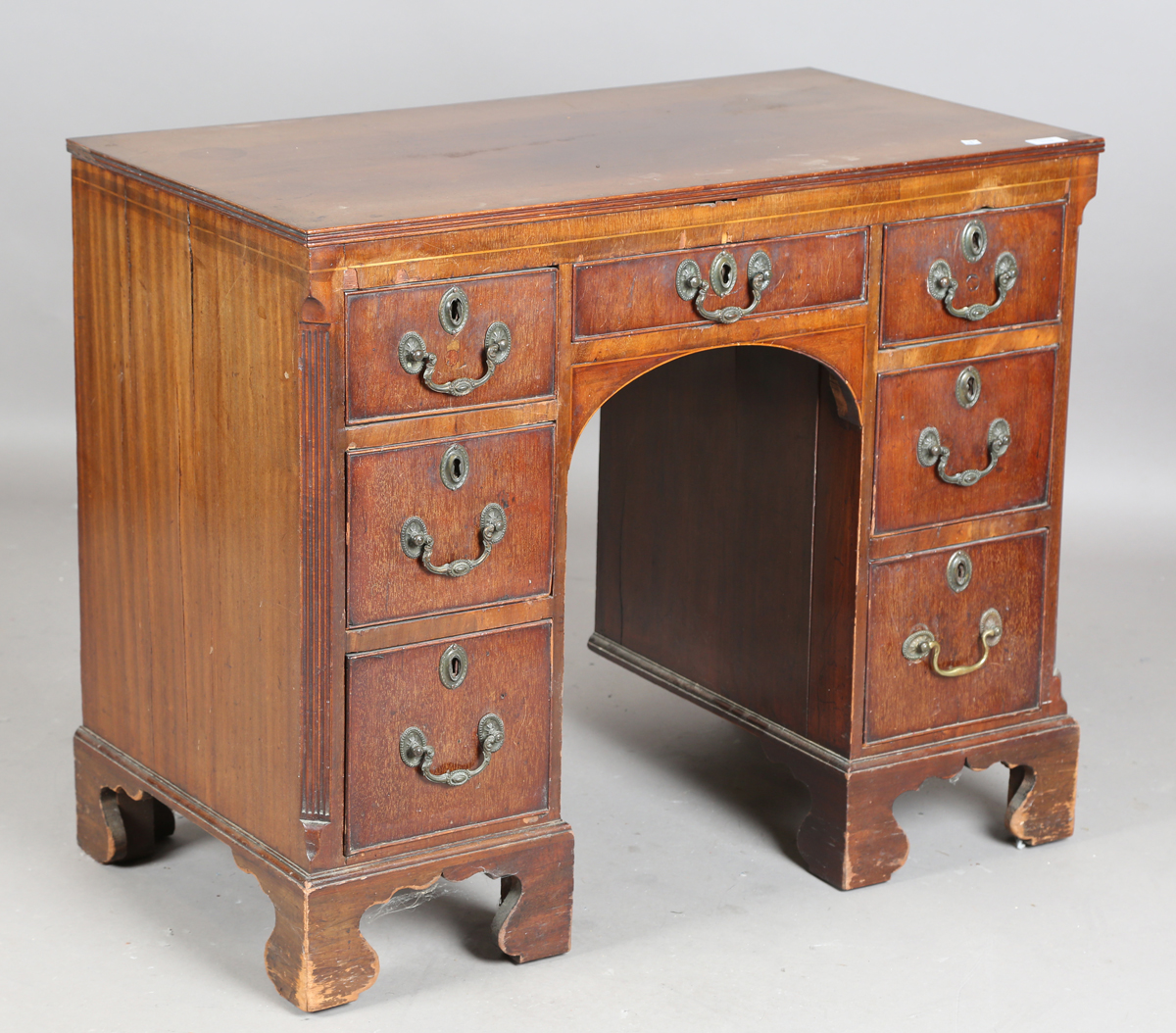 A George III mahogany kneehole desk, fitted with an arrangement of oak-lined drawers, height 76cm, width 91cm, depth 50cm (faults).