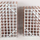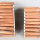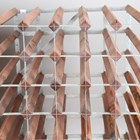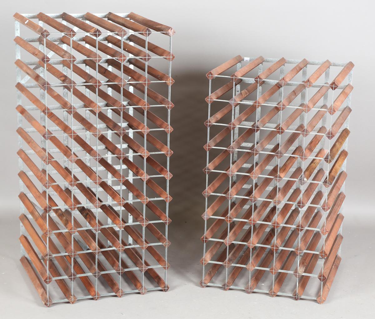 A pair of modern double-sided wine racks, height 91cm, width 53cm, depth 51cm and height 108cm, width 52cm, depth 51cm.