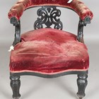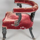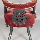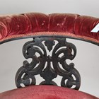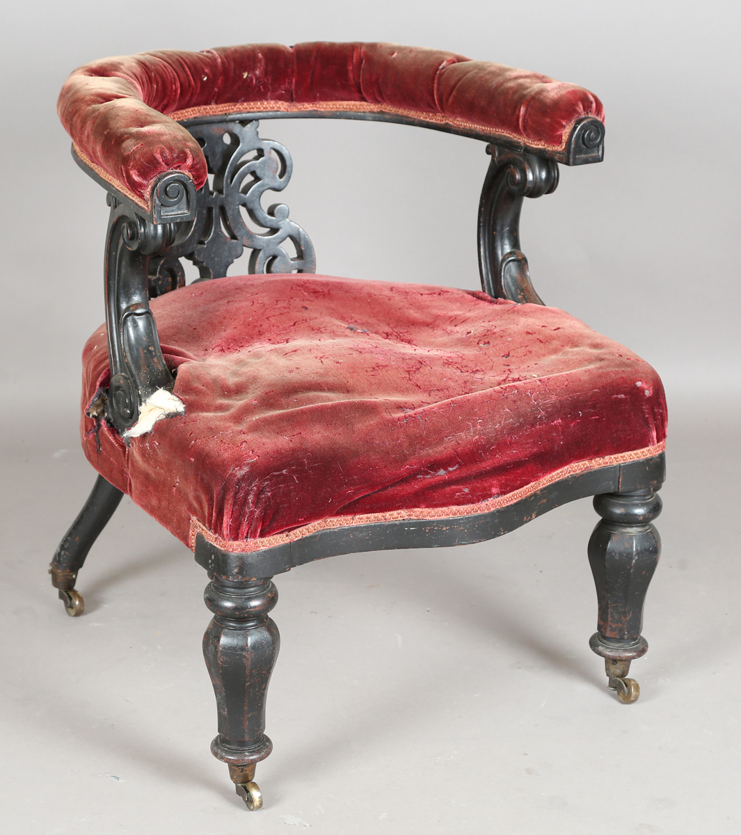 A mid-Victorian mahogany framed tub back gentleman's armchair, with carved scroll arm supports and octagonal baluster legs, height 75cm, width 70cm, depth 72cm.