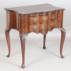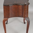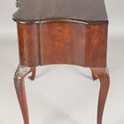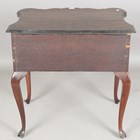 An early 20th century Queen Anne style mahogany lowboy, the serpentine top above two drawers, on carved cabriole legs, height 76cm, width 76cm, depth 49cm.