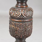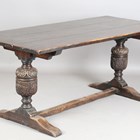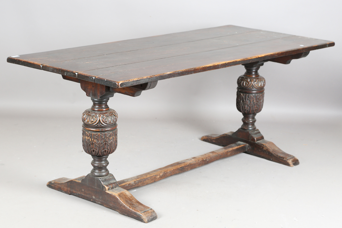 An early 20th century Jacobean Revival stained oak refectory dining table, on carved cup and cover supports, height 74cm, length 181cm, depth 81cm.