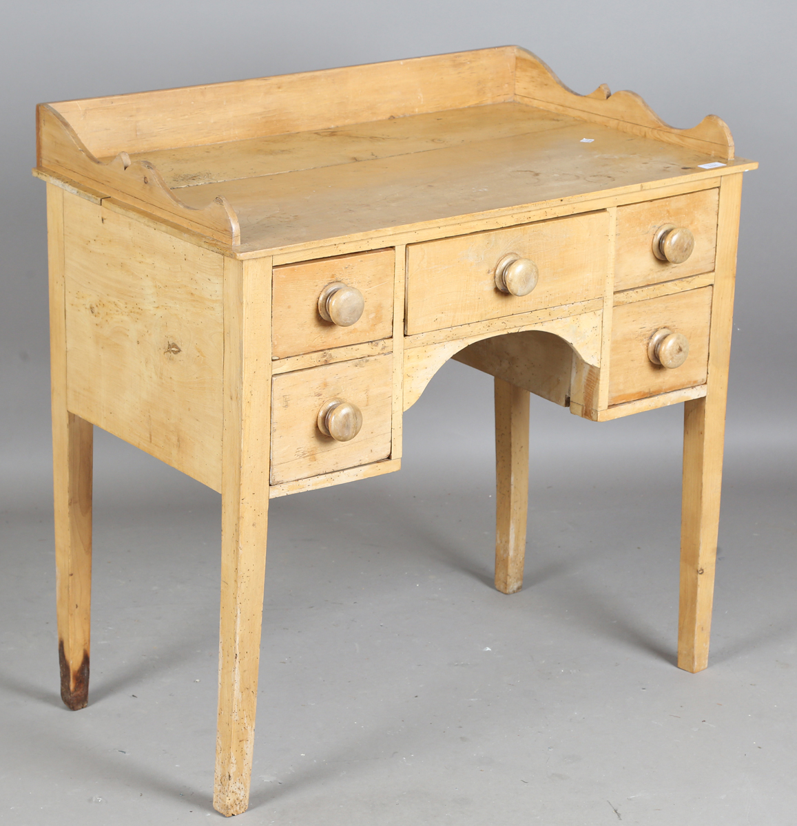 A 19th century pine side table, the gallery back above five drawers, height 92cm, width 91cm, depth 52cm.