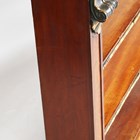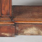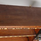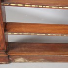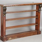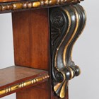 A Regency mahogany three-tier shallow bookshelf with gilt beaded borders and carved scroll mounts, height 103cm, width 134cm, depth 25cm (alterations).