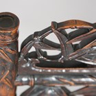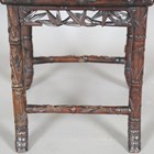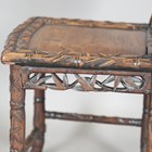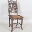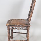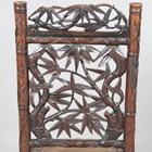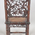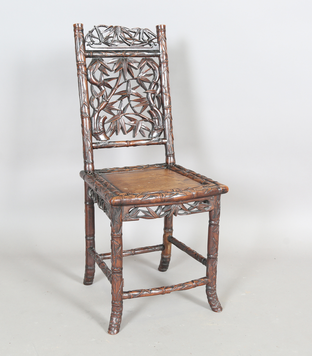 A 19th century Chinese hardwood child's chair, finely carved with bamboo and leaves, height 78cm, width 33cm.