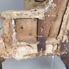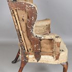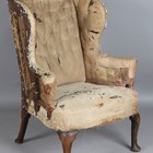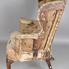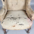 A 19th century Georgian style oak framed wing back armchair, raised on carved cabriole legs, height 110cm, width 82cm, depth 79cm (un-upholstered).