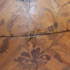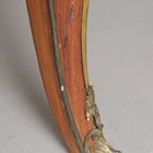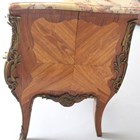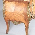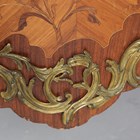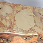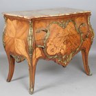A late 19th/early 20th century French kingwood and gilt metal mounted commode of bombé form, the Brèche d'Alep marble top above two foliate inlaid drawers, height 88cm, width 104cm, depth 55cm.