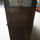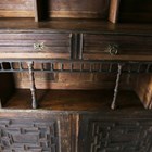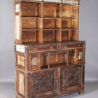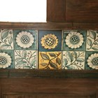 A late Victorian Aesthetic Movement pine dresser, possibly by Morris & Co, inset with Longden pattern ceramic tiles designed by Philip Webb, height 211cm, width 151cm, depth 47cm (faults).