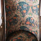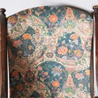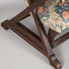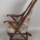 A late Victorian Arts and Crafts mahogany framed elbow chair, probably by Morris & Co, raised on an 'X' frame base, height 105cm, width 58cm.