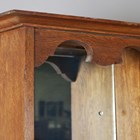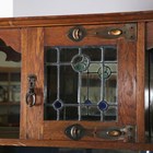 An early 20th century Arts and Crafts oak dresser, the back with a glazed cabinet, the base with cupboard and drawers, height 186cm, width 137cm, depth 49cm.