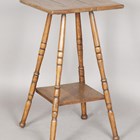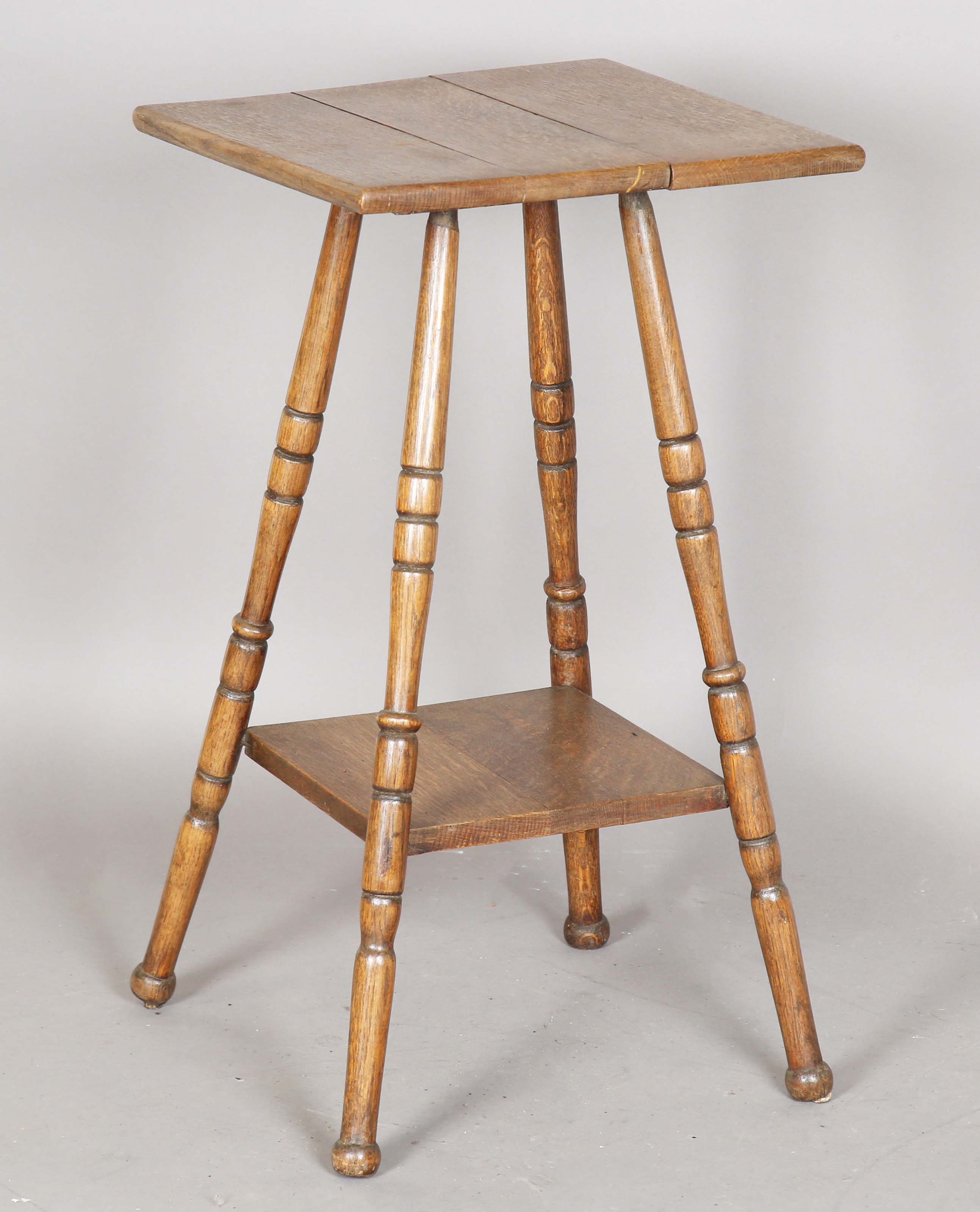 An early 20th century Arts and Crafts oak two-tier occasional table on ring turned legs, height 73cm, width 40cm, depth 40cm.