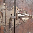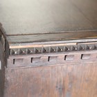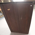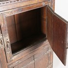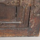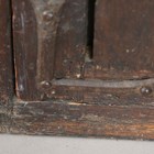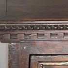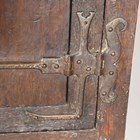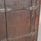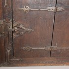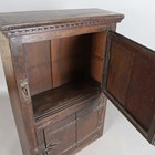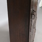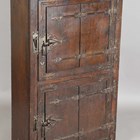 A late 19th/early 20th century Medieval Revival oak side cabinet, fitted with two folding double doors applied with Arts and Crafs steel strapwork hinges and locks, height 125cm, width 82cm, depth 30cm.