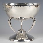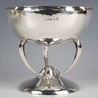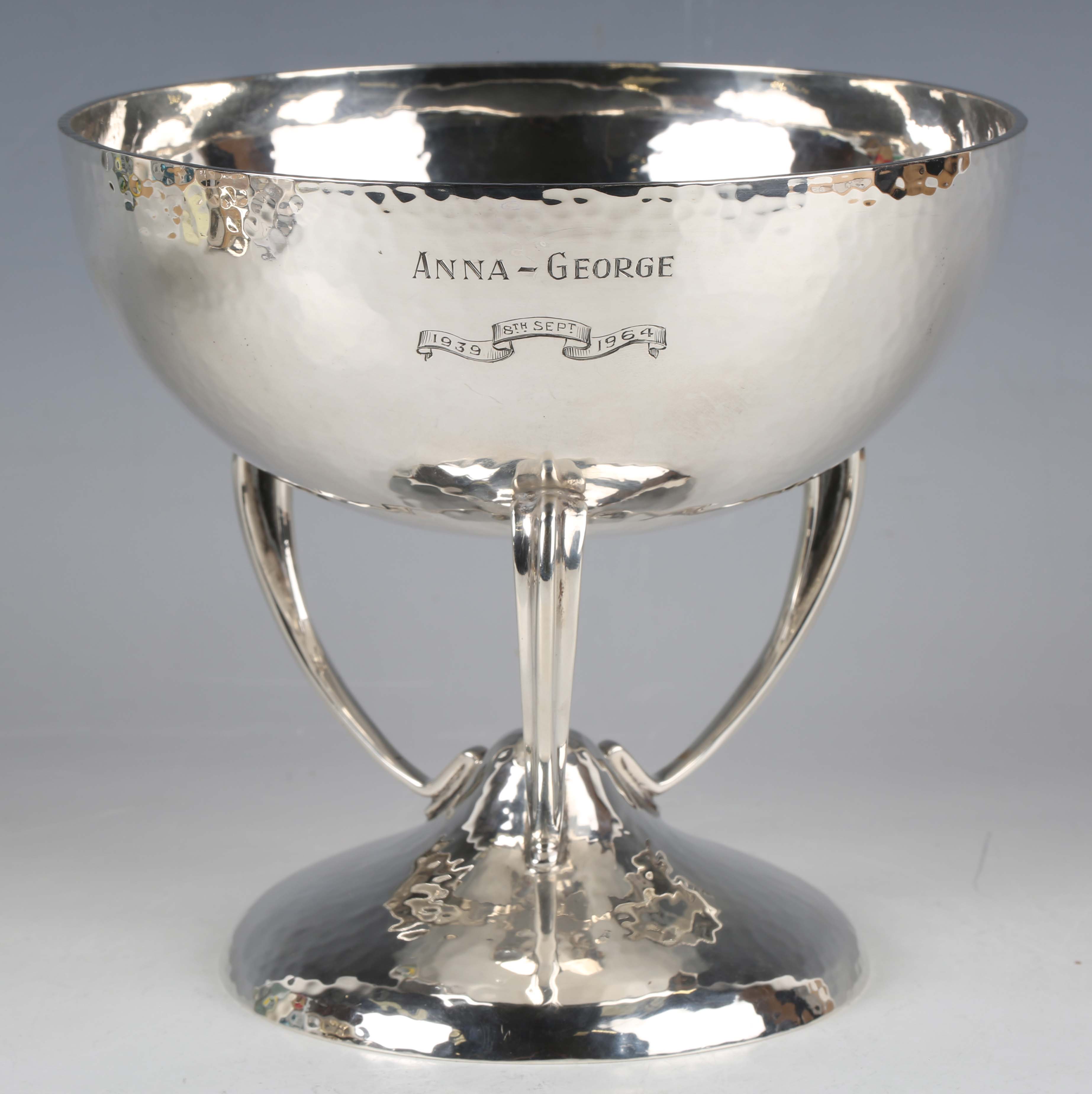 An early 20th century Arts and Crafts silver footed bowl, the circular top supported on three sinuous stems above a domed circular foot, Glasgow 1911 by James Weir, height 16cm, weight 483g.