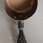 A pair of late Victorian Arts and Crafts copper and wrought iron coal scuttles, fitted with matching shovels, each bearing registration number to underside, height 40cm, length 40cm.