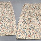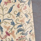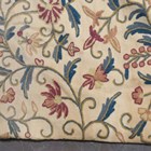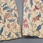 Two pairs of Arts and Crafts style crewel work curtains, worked in overall coloured wools on a cream ground, each pair length 200cm, width at hem 223cm and length 200cm, width at hem 175cm, together with a matching pelmet.