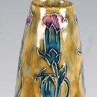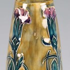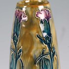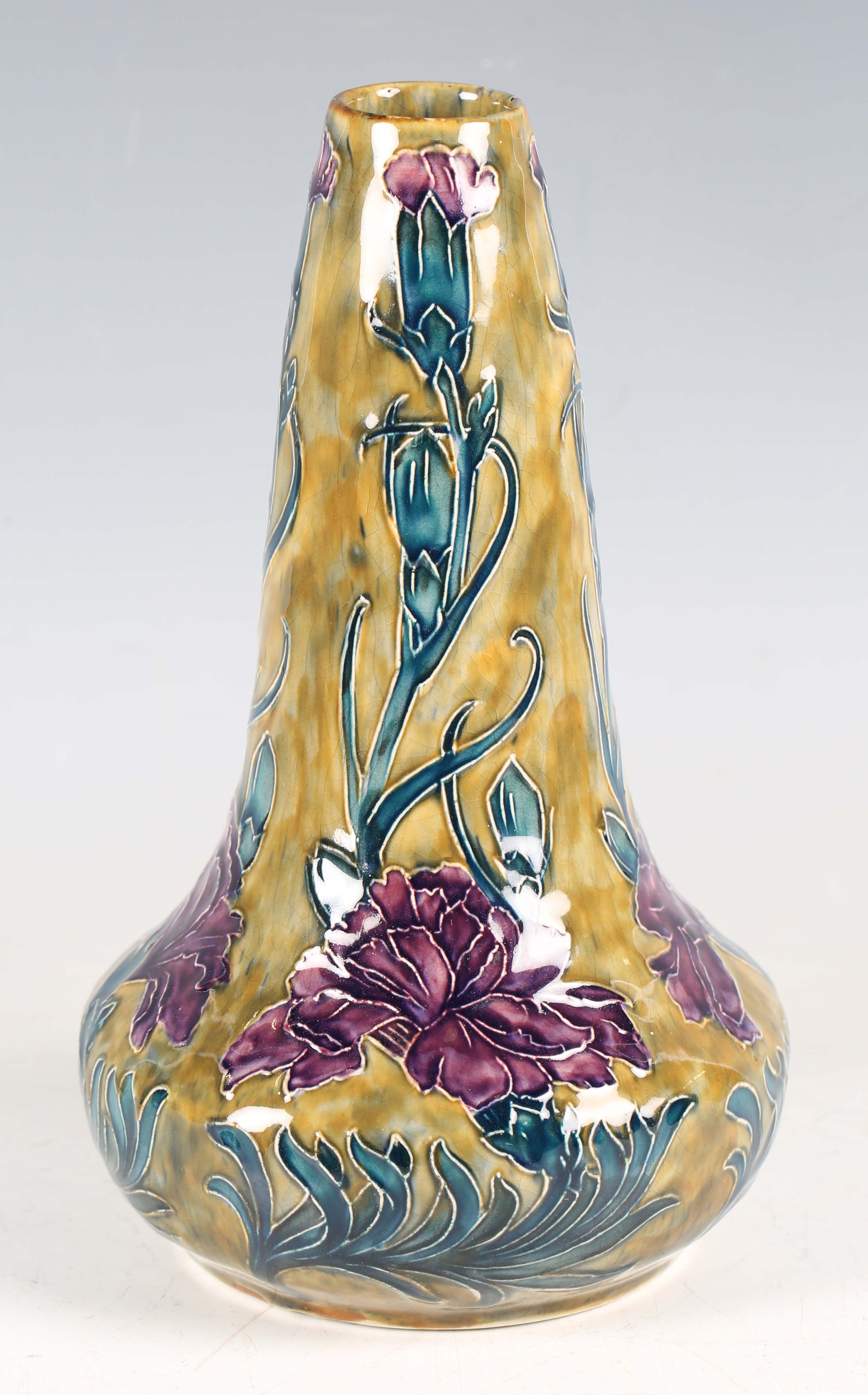 A late 19th/early 20th century S. Hancock & Sons Morrisware vase, designed by George Cartlidge, decorated with stylized floral carnation stems and foliage against a mottled green ground, green printed and painted marks to base, height 21.5cm.