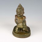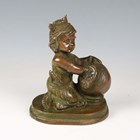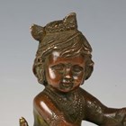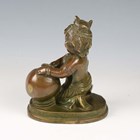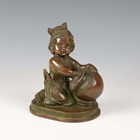 A 20th century brown patinated cast bronze figure of an Eastern child cleaning a vase, height 18cm.
