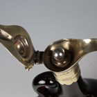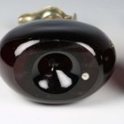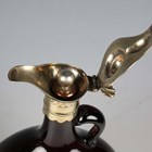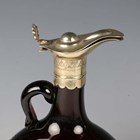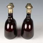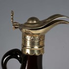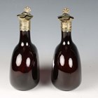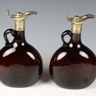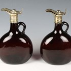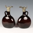 A pair of Victorian brown glass and nickel mounted tappit lidded ewers, height 22cm.