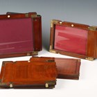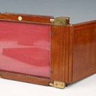A group of four 19th century mahogany and brass mounted camera plate holders, largest width 25cm.