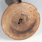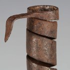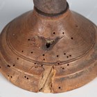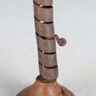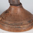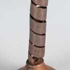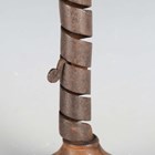 An 18th century wrought iron corkscrew candlestick with spiral twisted stem and stepped walnut base, height 20.5cm.