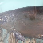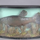 A 20th century taxidermy specimen of a tench, the stuffed fish mounted within a glazed bowfront case, the reverse bearing label inscribed 'H.R. Bennett Taxidermist', height 34cm, width 55cm.