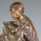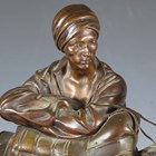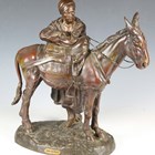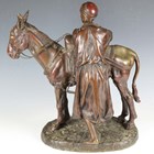 Antoine Bofill - 'Anier du Caire', a late 19th century French brown patinated cast bronze figure of a donkey-driver leaning against his donkey, bearing cast signature, titled plaque and foundry stamp, height 46cm, width 43cm.