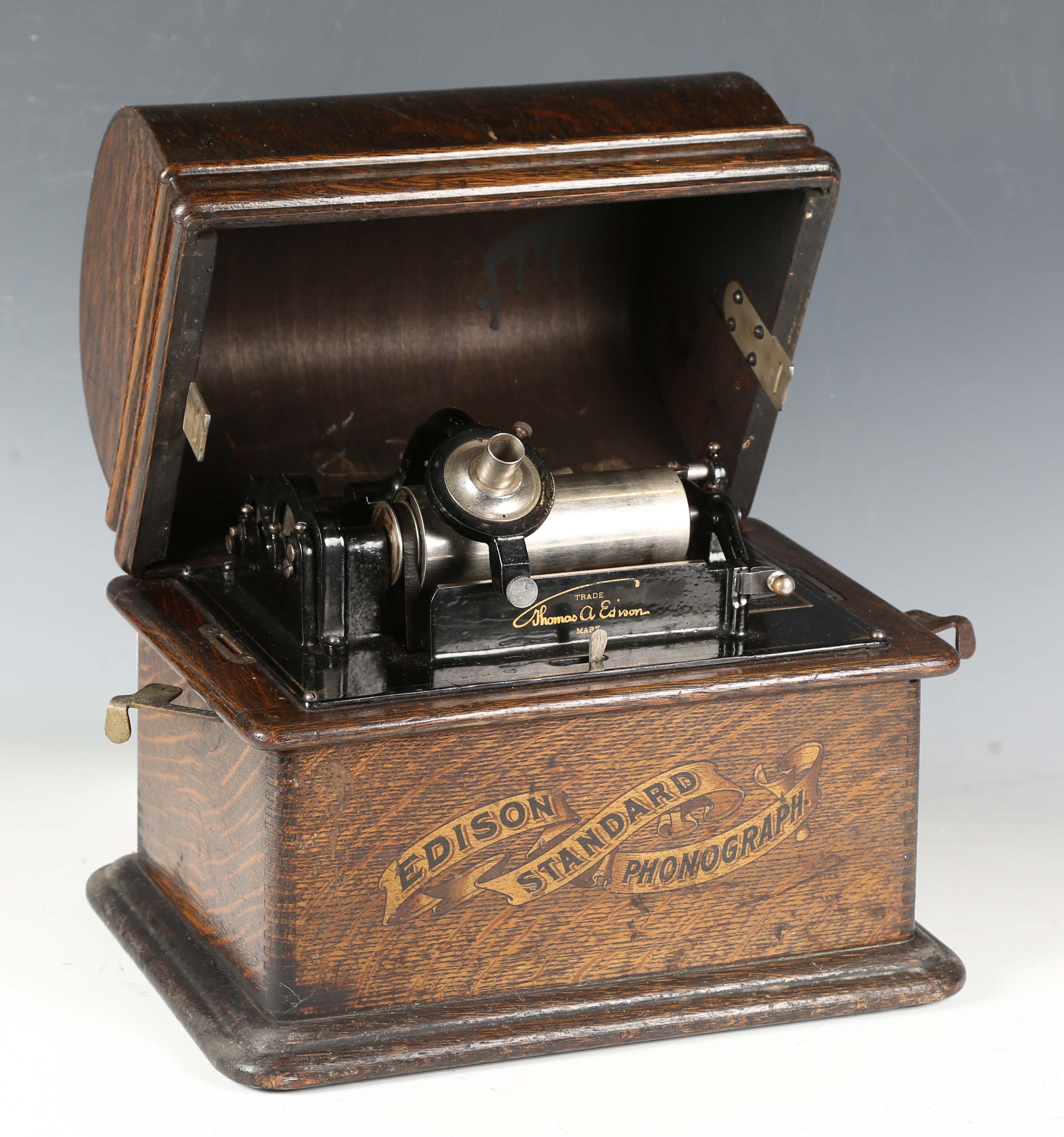 An early 20th century Edison 'Standard' phonograph, within an oak case, width 33cm.