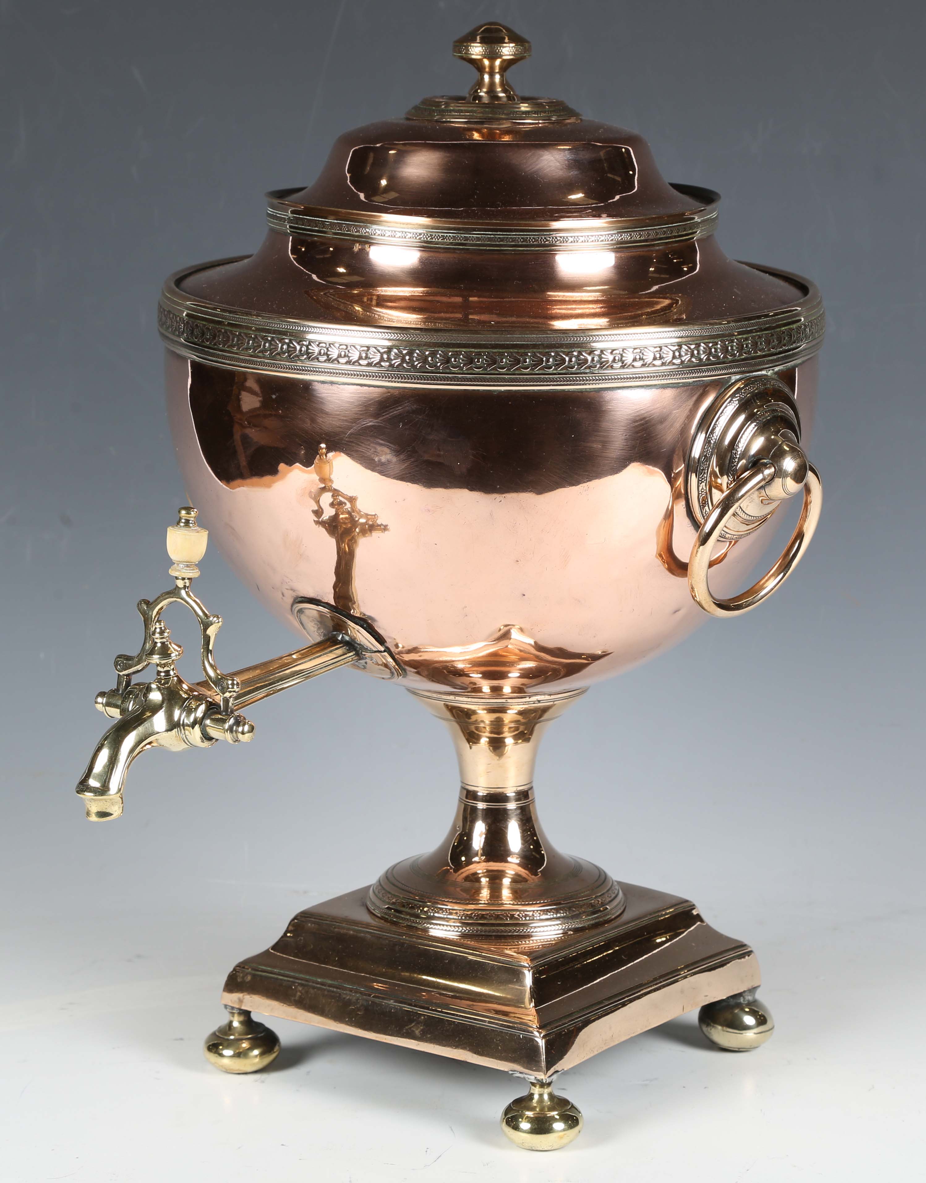 A Regency copper samovar with brass mounts, height 42cm.