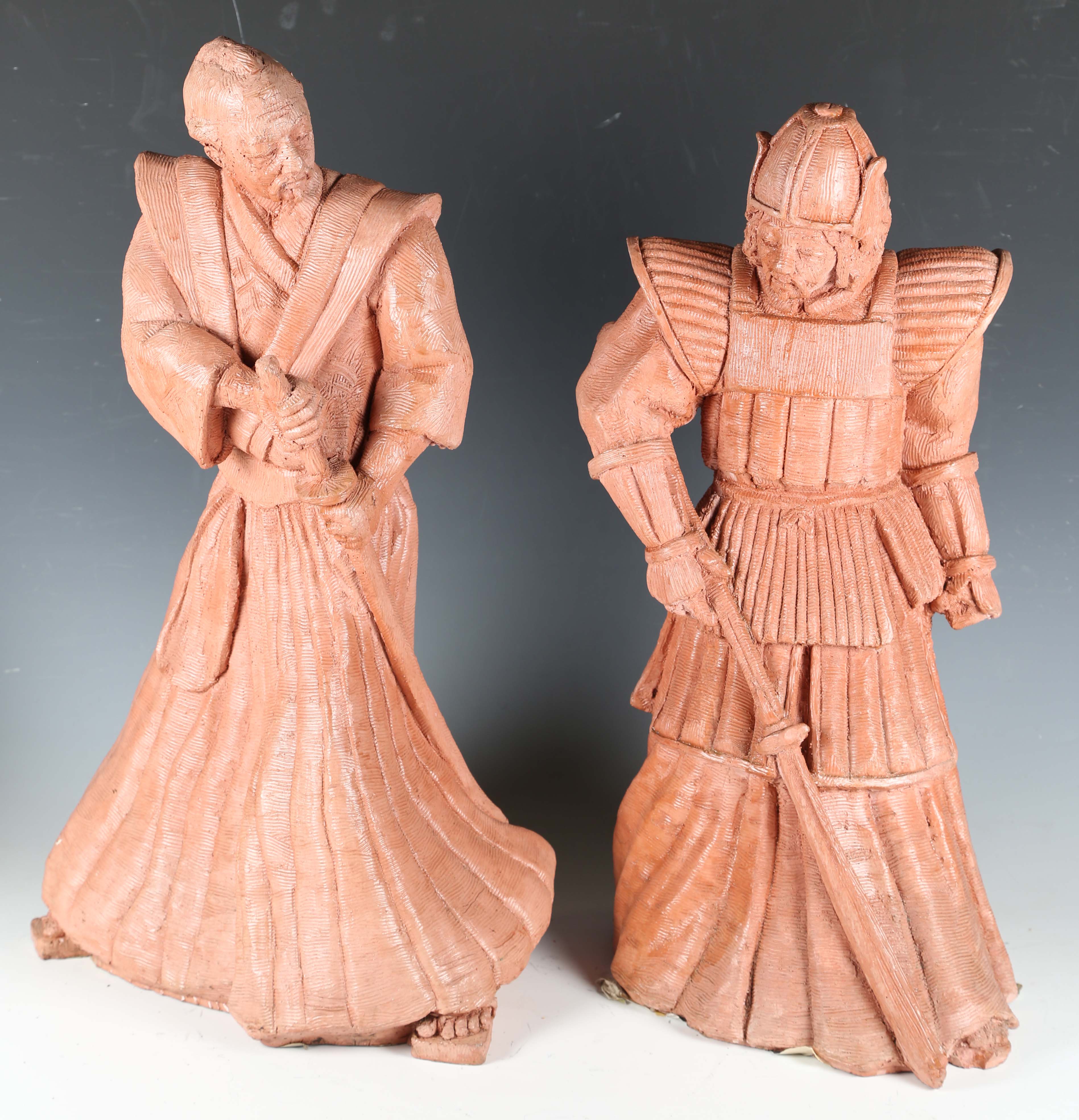 A pair of modern cast composite figures of samurai warriors, heights 57cm and 54cm.