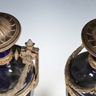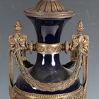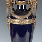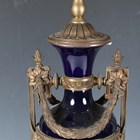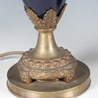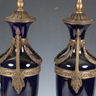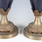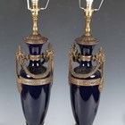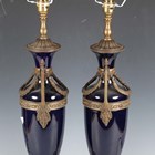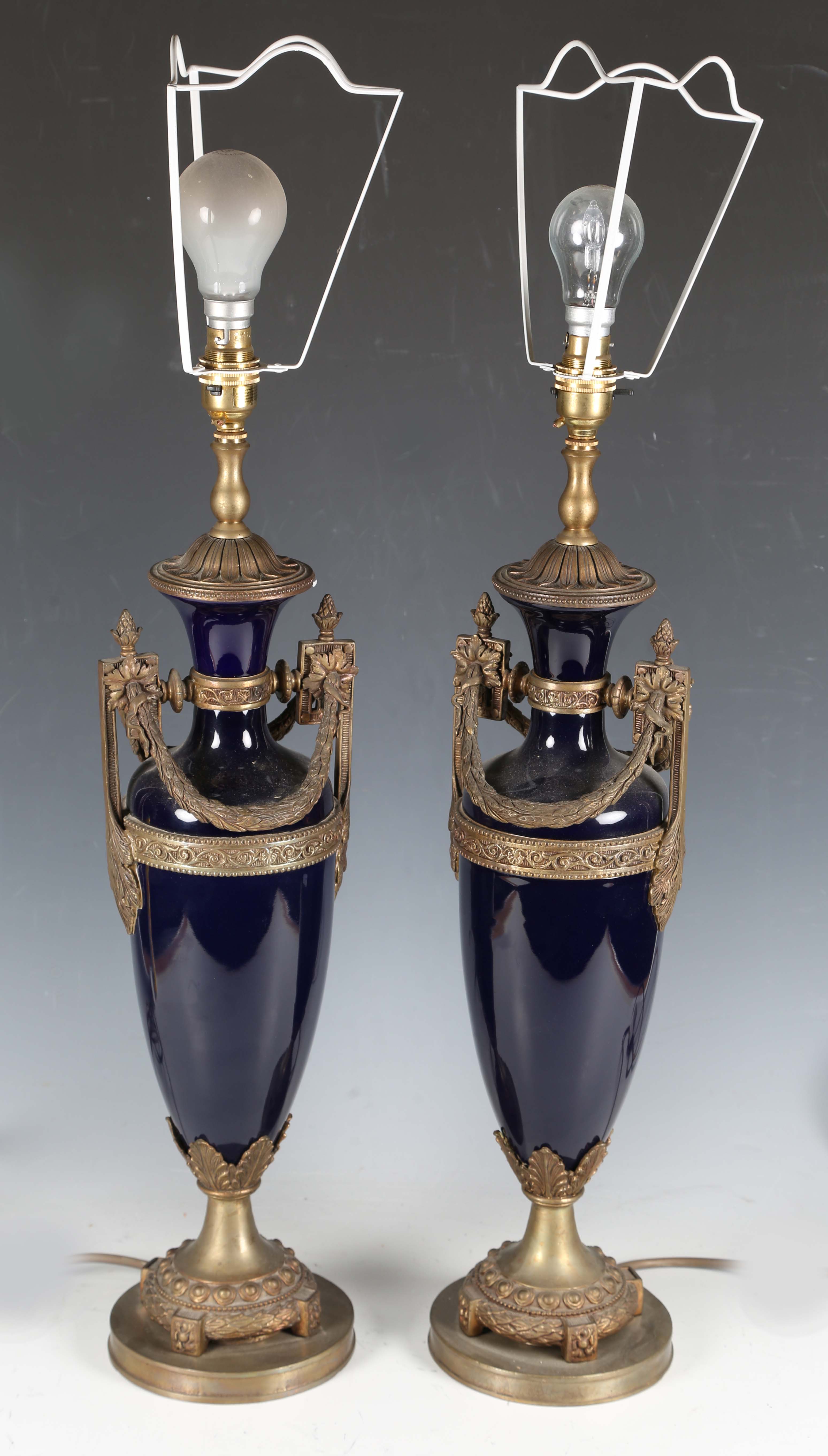 A pair of late 20th century brass mounted Sèvres style dark blue glazed porcelain table lamps, height excluding fittings 46cm.