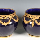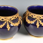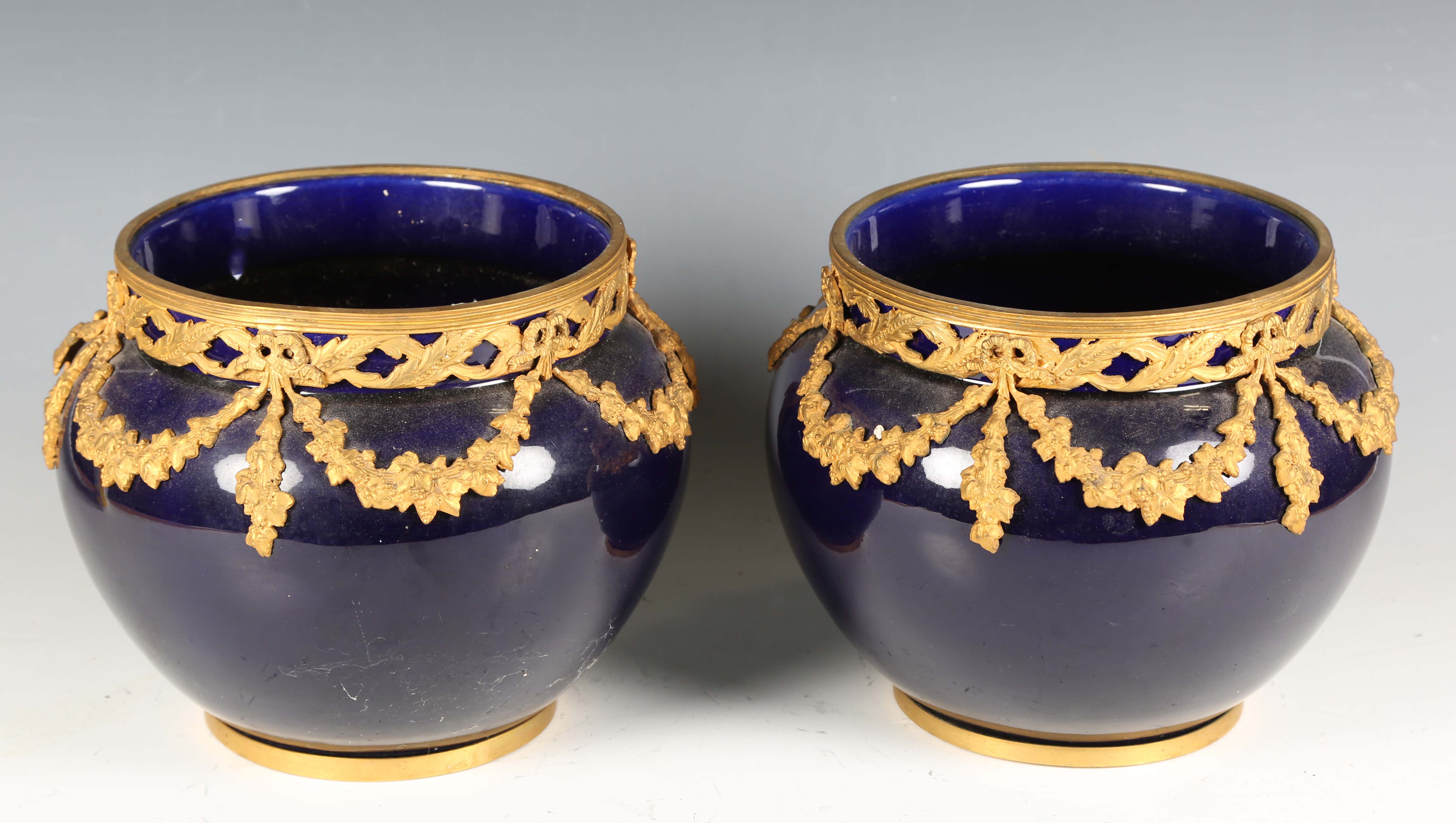 A pair of late 20th century gilt metal mounted Sèvres style porcelain jardinières, height 19.5cm.