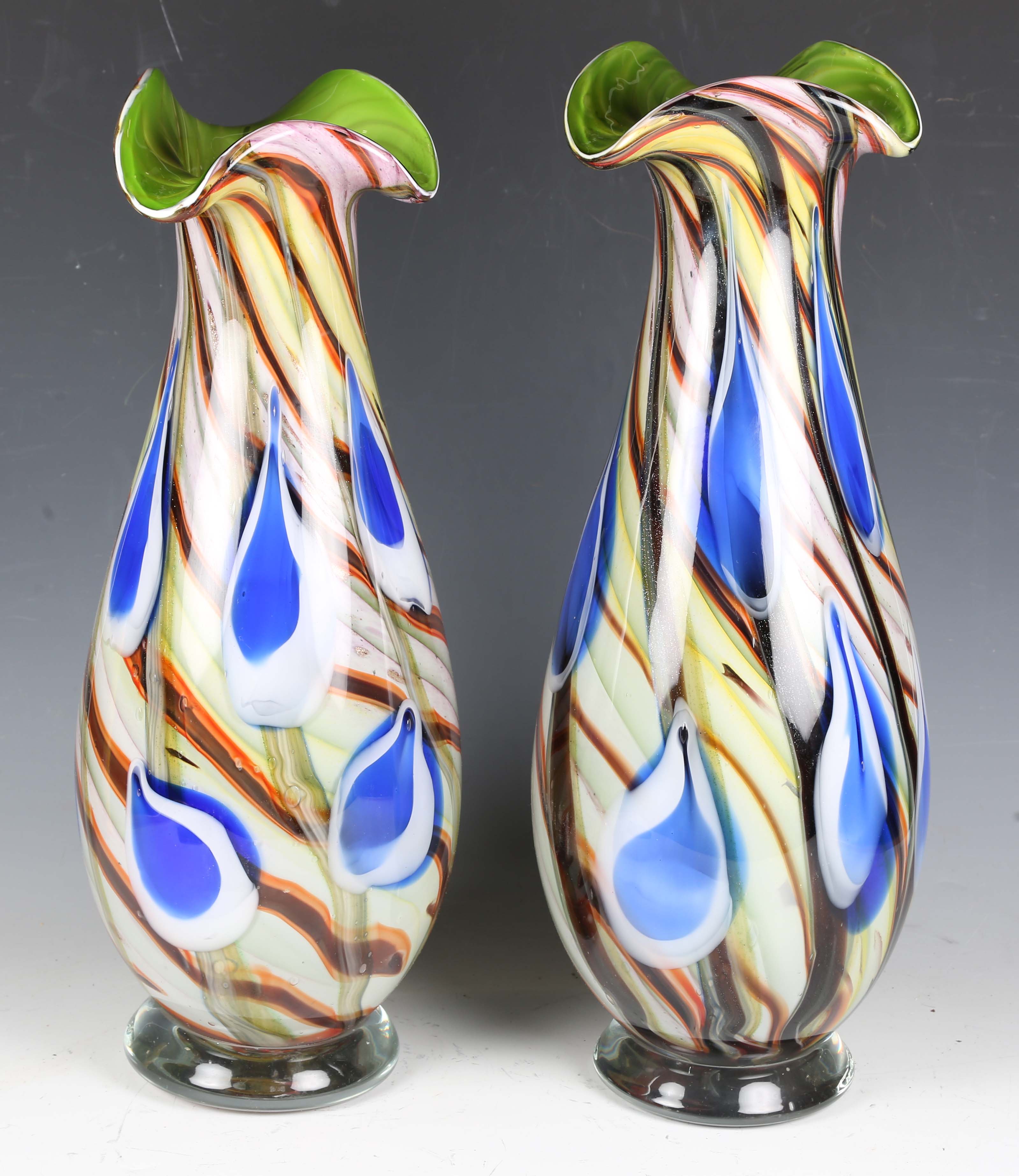 A pair of large Italian style coloured glass vases of elongated baluster form, height 52cm.