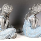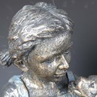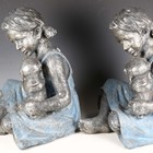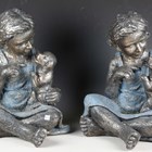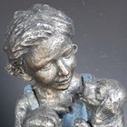 A pair of late 20th century cast plaster figures of a seated girl holding a puppy, height 46cm.
