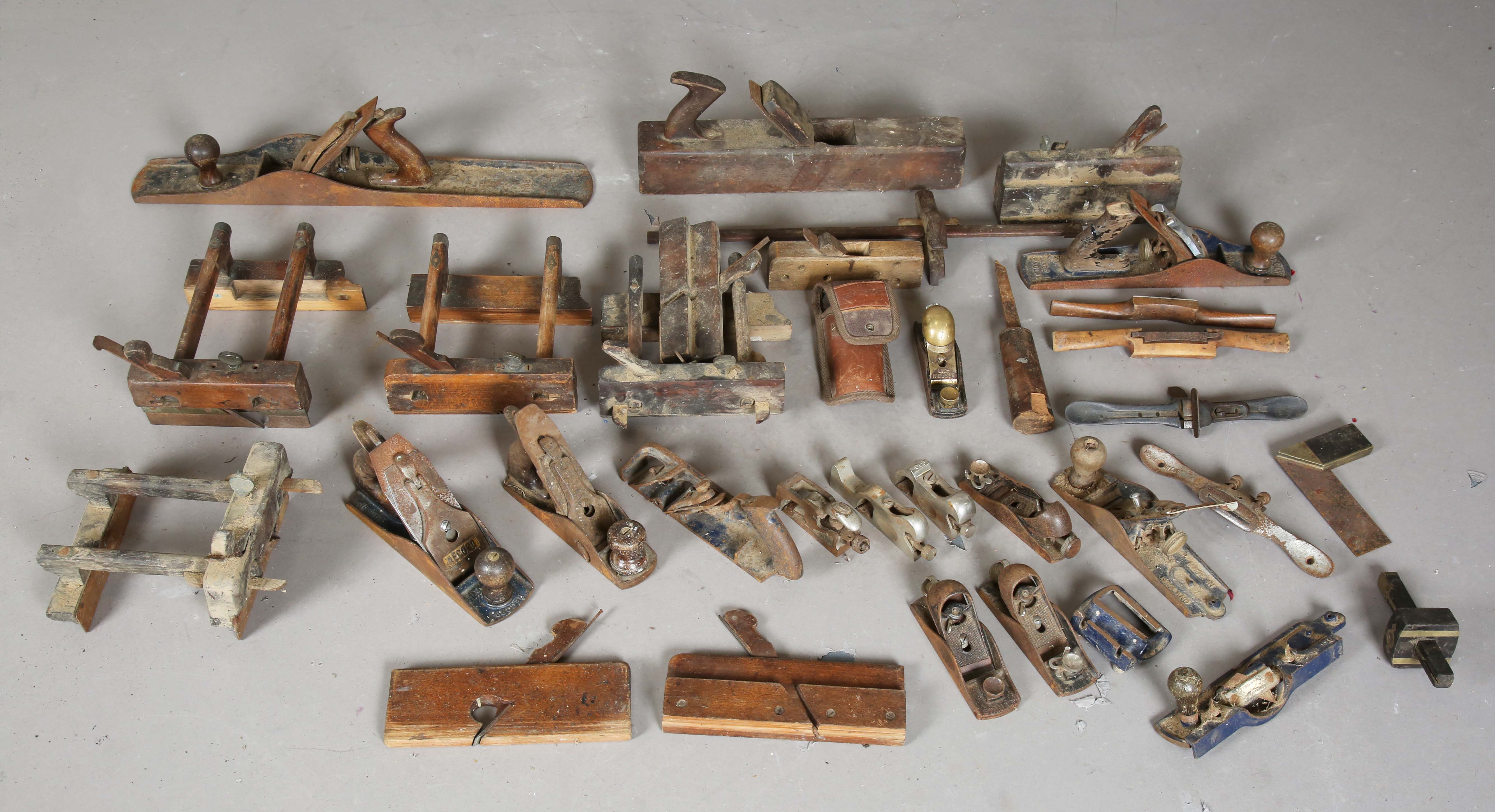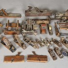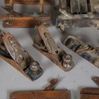 A collection of woodworking tools, including a Lie-Nielsen 9½ plane, sash planes and others.