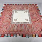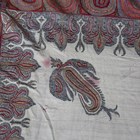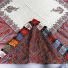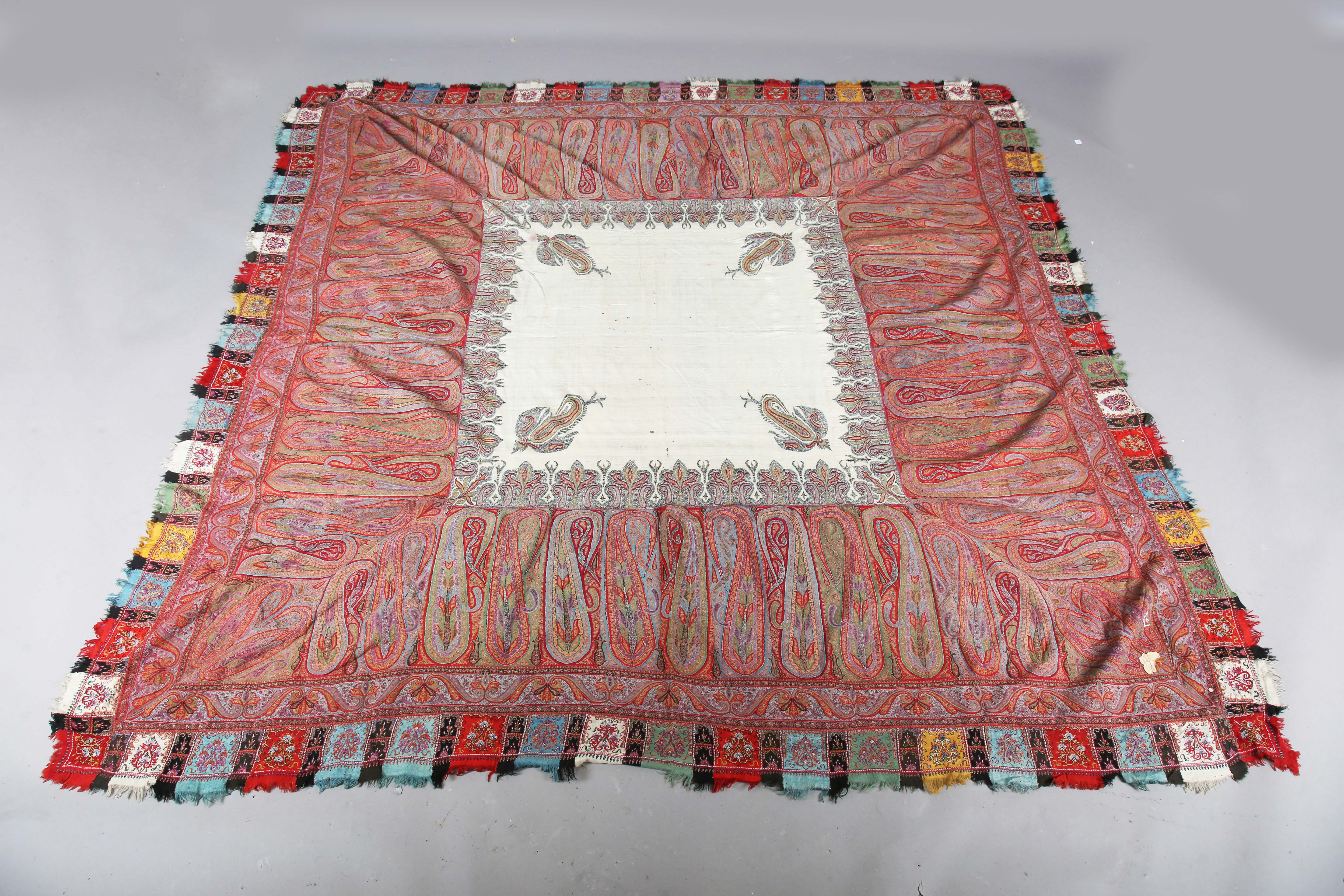 A 19th century Kashmir woven cotton shawl, the central ivory panel within a wide border of stylized boteh and an outer border of embroidered panels, 200cm x 200cm, together with another Kashmir shawl, 320cm x 160cm, and some related border sections.