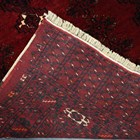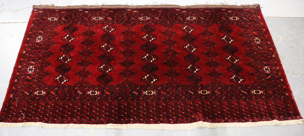 A large Afghan juval, the deep claret field enclosing guls, within a hooked gul border, 230cm x 120cm.