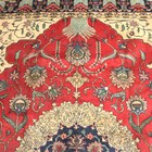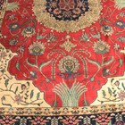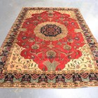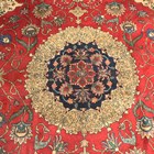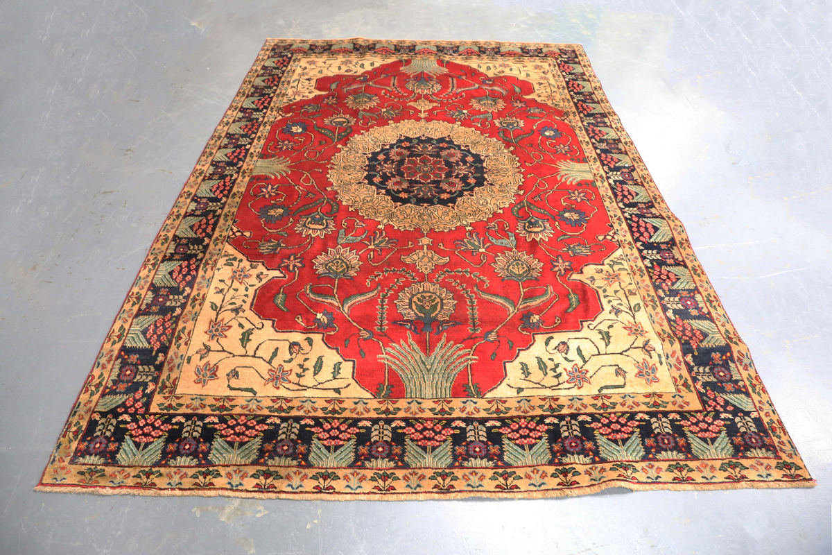 A Tabriz carpet, North-west Persia, mid-20th century, the claret field with a large circular medallion, supported by flowering tendrils, within a midnight blue border, 330cm x 232cm.