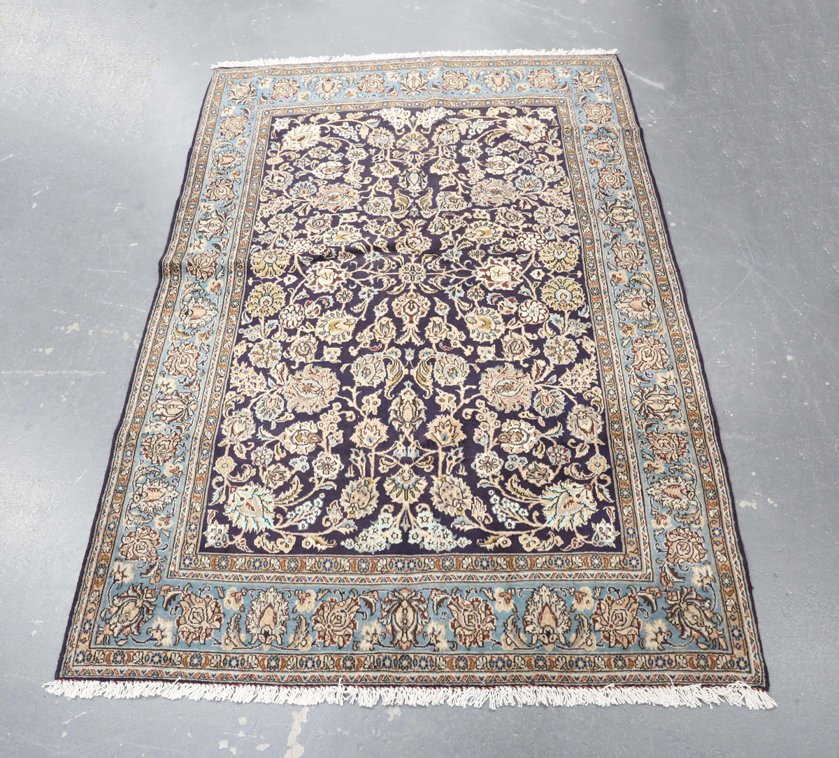 A Kashan rug, Central Persia, late 20th century, the midnight blue field with overall scrolling vines and palmettes, within a complimentary border, 205cm x 135cm.