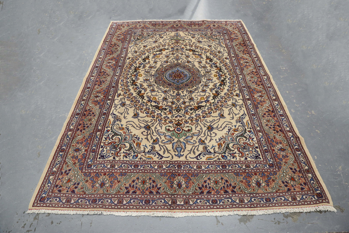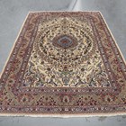 A Moud carpet, Central Persia, late 20th century, the ivory field with a pomegranate medallion, supported by winged horses, within a taupe complimentary border, 292cm x 203cm.