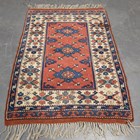 A Turkish rug, late 20th century, the pink field with three hooked medallions, within an ivory border, 171cm x 117cm.